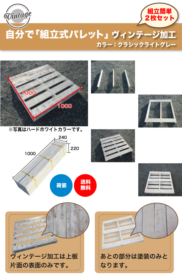 ※ヴィンテージ加工は上板片面の表面のみです。 ※カラーのサンプルをお送りすることはできません。 ※組立時は必ず手袋等を着用し組立て下さい。 本商品は低コスト物流用として規格されておりますので 若千木材にカケやヒビが入っております。 本商品はプレーナーがかかっていない為、毛羽立ち・ササクレがございます。 カビの原因になるため納品されてから3日間以内に組立てていただくことをおすすめします。 ※商品発送後に返品・キャンセルをされますと、商品代・送料代をご負担していただくことになりますのでご了承ください。 ※沖縄・北海道・離島は別途運賃が発生致します。 ※大量注文の場合は別途で見積り致します。 ※釘は、1ヶ所につき2~3本使用するのが一般的です。 (当商品では、2本ずつの場合は108本、3本ずつの場合は162本の釘が必要となります。) ※ビスを使用する際は、木材に下穴を開けてから打つと割れにくいです。 |