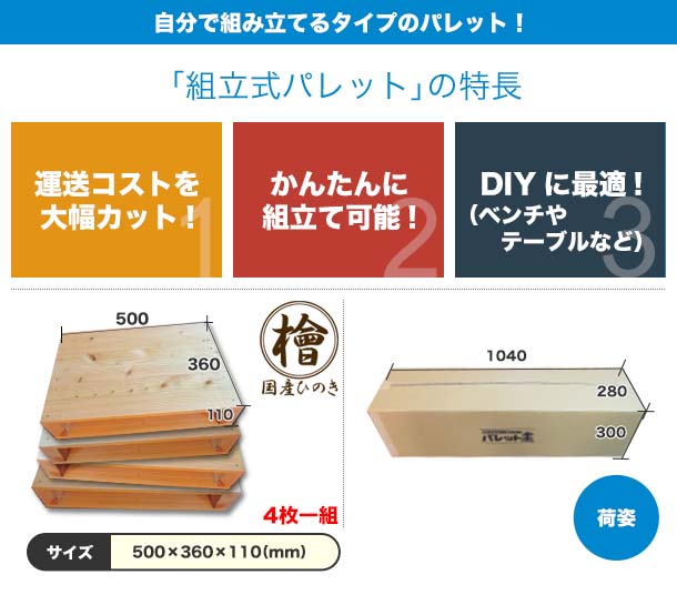 | サイズ | 500×360×110(mm)(完成時のパレットのサイズ) | |