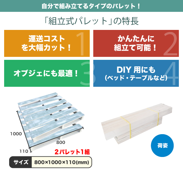 | 商品仕様 | サイズ | 800×1000×110(mm)(完成時のパレットのサイズ) |
